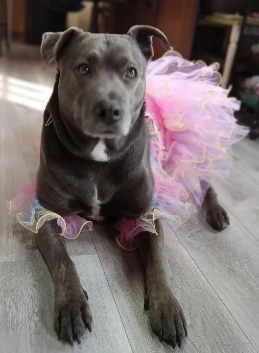 Hey there! I'm Sky Brigman, a 5-year-old blue pit-lab mix with a heart full of love and a tail that never stops wagging.